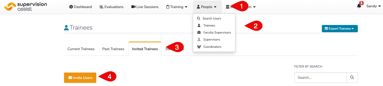 - Select the Invited Trainees Tab.