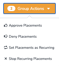 💡Tip: To approve multiple 'Ready' applications at once, after step 2, on the Placement Applications page, select the checkbox next to all placement applications to be approved, then click the Group Actions button.